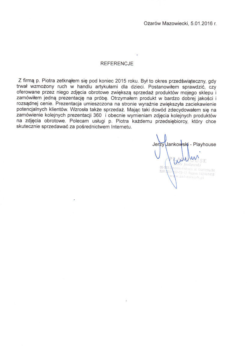 Zdjęcia obrotowe – wykonane w technologii 360 stopni stają się coraz bardziej popularne. Korzystają z nich więksi i mniejsi producenci. Największe sklepy internetowe (przykład: eobuwie.pl) prawie każdy produkt prezentują jako zdjęcie obrotowe 360 stopni. Możliwość wyświetlania zdjęć obrotowych wspiera także wiele platform e-sklepów (np. Magento) co pozwala w sposób bardzo estetyczny umieszczać zdjęcia obrotowe na karcie produktu w sklepie internetowym.